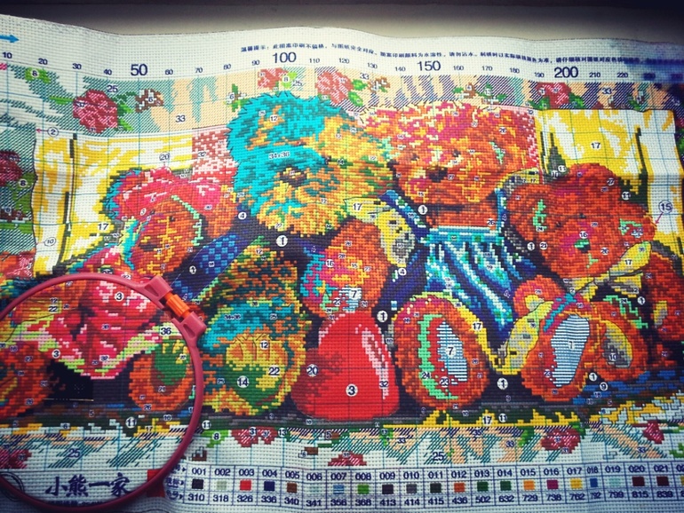 Инга, подскажите, во сколько нитей Вы шили полукрест и крест на рамке? Самих мишек, как я понимаю, в три надо...