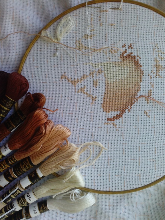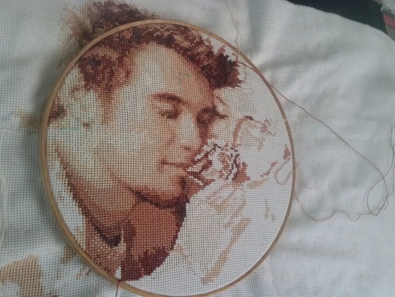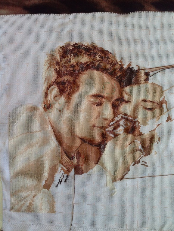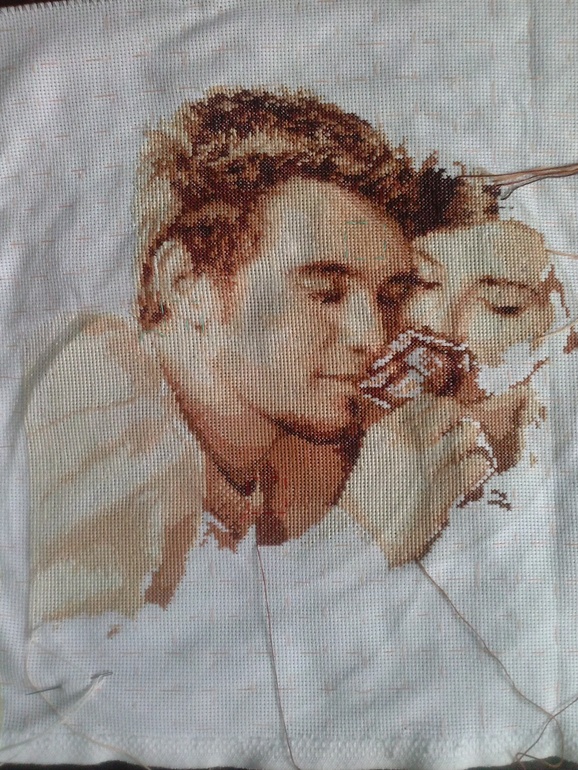 Долгострои и вышивальные процессыНе люблю начинать новое не доделав начатое,но тут попала в ступор(оказалось мне тяжело вышивать в одном цвете, нудновато ,поэтому приходится разряжать переодически мелкими работками.Вот мои "Влюблённые" продвигаются не очень быстро ....а так всё начиналось)