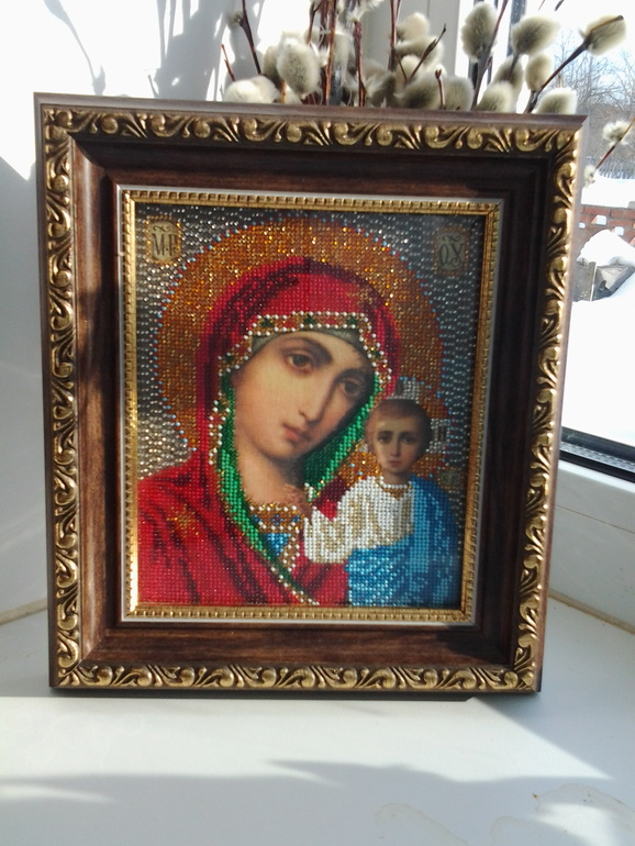 Вышивка бисером ГОТОВЫЕ РАБОТЫРешила попробовать вышивку бисером,выбирала схему иконы в подарок маме,по своей глупости и незнанию приобрела набор с ювелирным бисером,думала за месяц уложусь:)))с перерывами закончила я работу за год.без лупы не обошлось