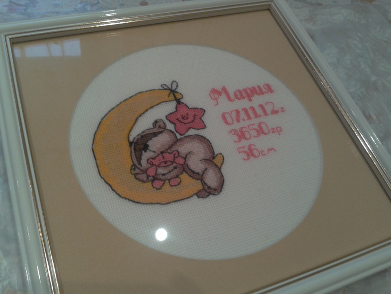 Люблю нежно я свою маленькую крестную доченьку. Она мне дарит столько любви и нежности! Эта метрика вышита для нее.