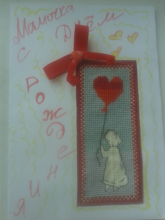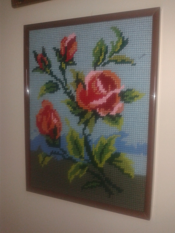Единственная оформленная работа, вышита шерстяными нитками, полукрест.