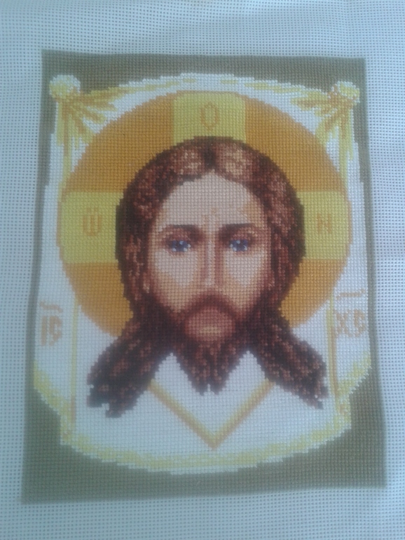 Икона, набор от Lutars.Вышивалась оочень долго из-за обилия однотипных цветов.