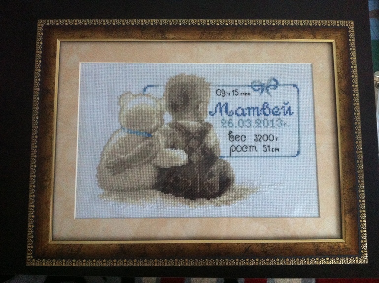 Вышивка крестом ГОТОВЫЕ РАБОТЫБуквально недавно выложила свою работу - метрику сына, и появились заказы. Заказщице понравилась картина и заказала своему сыну такую же.