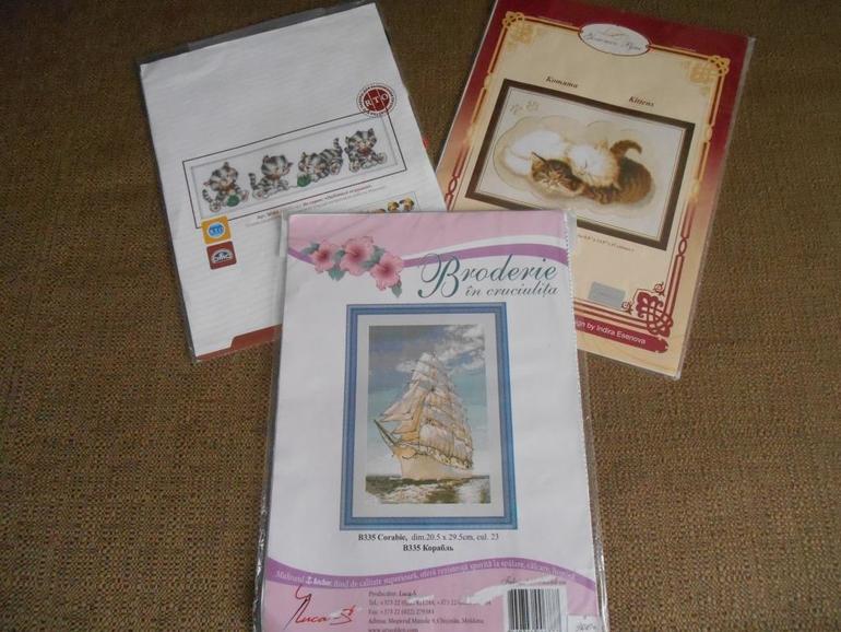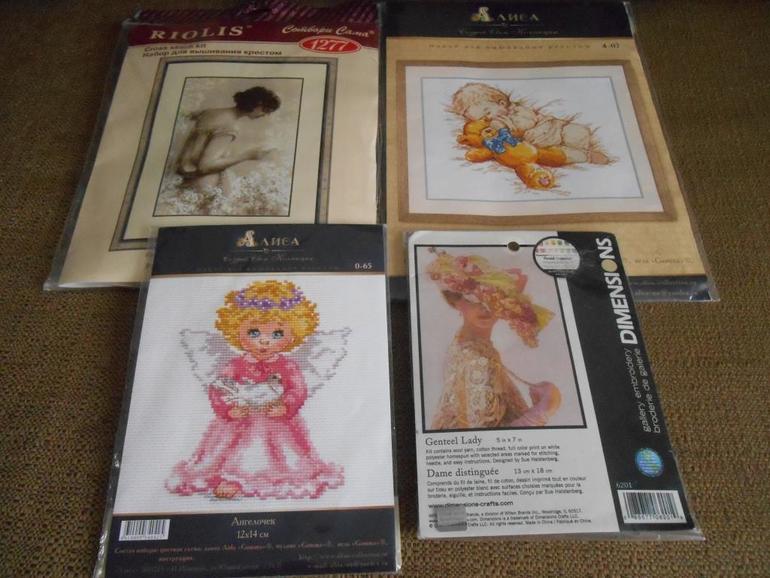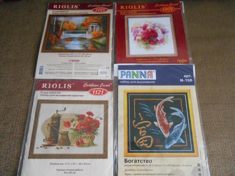 Во всех наборах схемы чистые и есть образцы ниток, единственное у "Трио тюльпанов" ниточки №13069 см 7 осталось.
