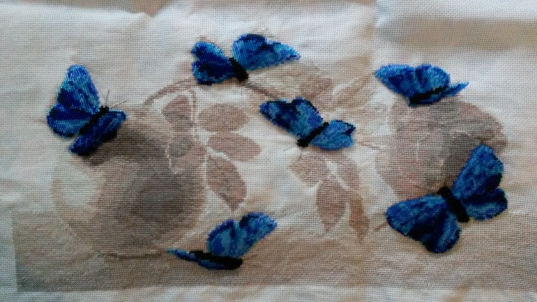 Фото конечно не совсем удачное. На самом деле бабочки ярче. Кстати бабочки из бисера, все остальное крестик.
