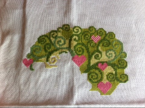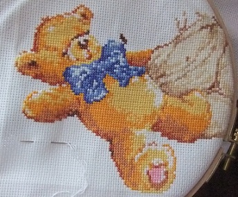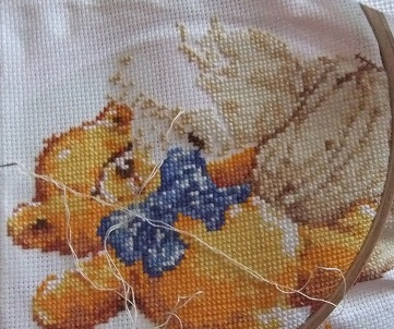 ). За вышивку садилась один разок, пока мой супер активный сыночек спал. Вышивать почему-то не хочется, не идет и все тут, но два крестика с трудом выковыряла:
