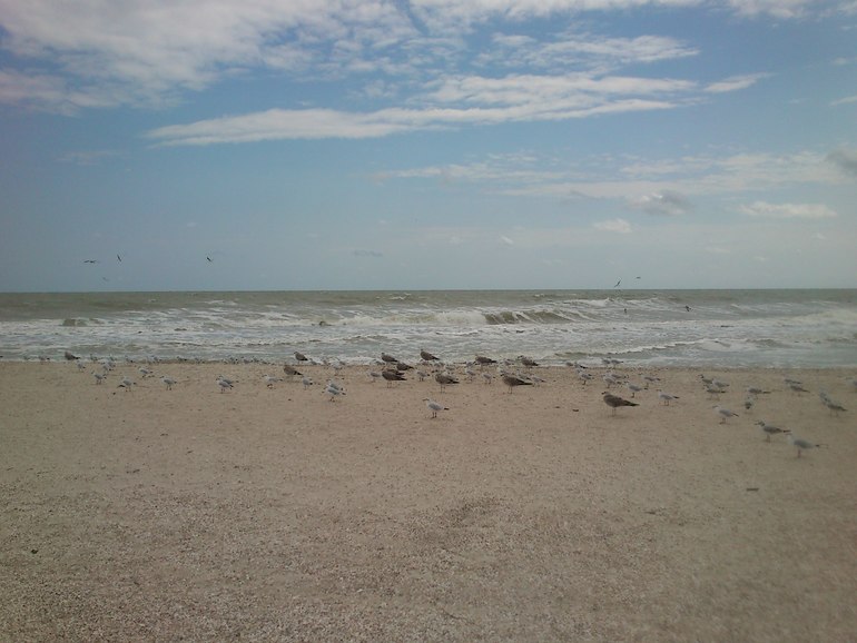 Запомнилось то, что к нам под машину свалился пакет, оказывается чайка в полете поймалась в полиэтиленовый пакет и свалилась к нам. муж ее быстро выпустил, что я не успела сфоткать, жаль. Чайки там в основном мелкие и "с наушниками" на голове, такой окрас смешной. Были и покрупнее рябые.