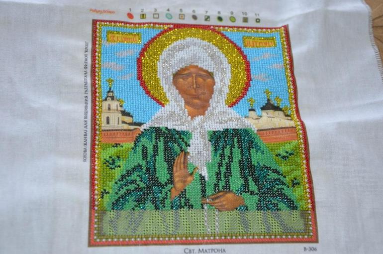 По отчету: вышивалось мало, к Греческому полдню даже не притронулась, вышивала только Матронушку. И вот результат: