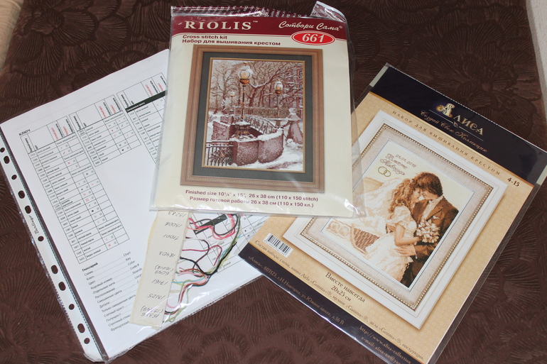 В посылке остатки метрики для новобрачных от Алиса и целый набор от Риолис. А еще Ирочка сделала мне копию схемы Викторианского очарования от Дименшенс, с ключом и образцами ниточек для подбора.