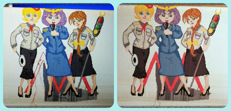 Всем привет! я, как всегда, в числе последних. Немного моя вышивка продвинулась. Было/стало: