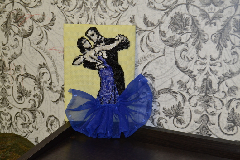 Девочки привет! Начала пару вышивать бисером и не хватило не сил не терпения, вместо бального пышного платья из бисера оформила лентой, хочу узнать ваше мнение надо ли ещё в оформление добавить ленты, например бантик в уголок сделать или этого достаточно, рамки не будет. Спасибо.