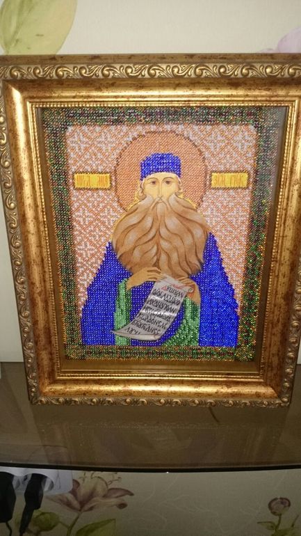 Да фото не передаст всей красоты , первая икона ювелирный бисер,очень мелкий ...иголка в бисеринки не проходила, пока не подобрала очень тонкую , в которую вдеть ниточку не могла )))