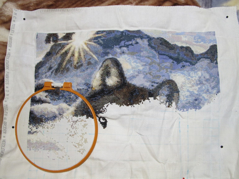 Вот, по закону подлости, на таком "немного осталось" и становится вышивка "долгостроем".Но я постараюсь с вашей помощью не допустить этого))