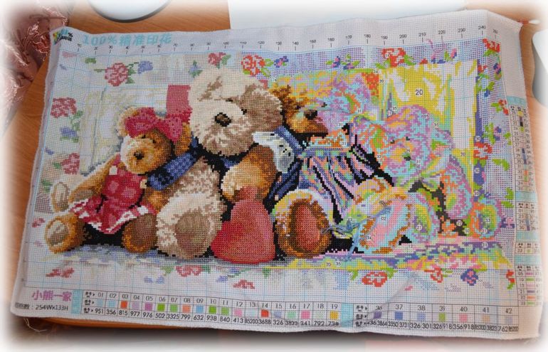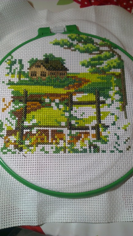 Канва жесткая,пока так и не выбрала толком каким способом вышивать... поэтому пока медленно выходит