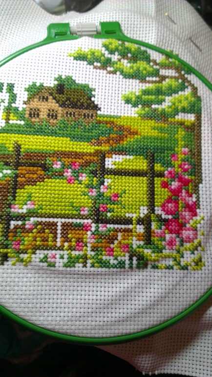 Вышивка продвигается семимильными шагами, т.к. я с дочкой снова на больничном....ну не хочет эта простуда нас отпускать. Обидно, что опять классные фотки пропустили в саду.