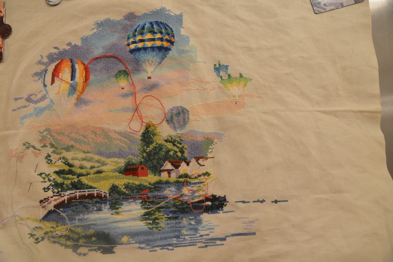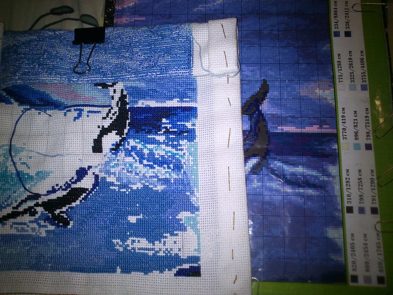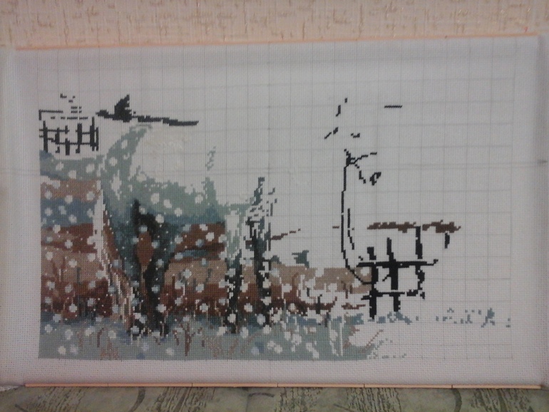 Половину из 5 крестиков вышивала светлыми нитками, так что и динамика не заметна. эхх не закончить мне до лета((