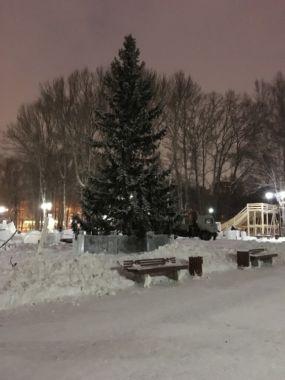А это вид на садик , надеемся потом в него попасть, а не за тридевять земель. Сегодня вечером гуляли в парке и там началась подготовка к новому году, елку поставили, основу для горок сделали , навезли ледяных кубов и мастерят скульптуры, скоро красота будет)))