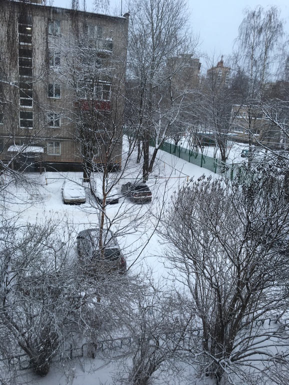 Всем привет! У нас до этого было все около 0 и сильные ветра((( а теперь ветер стих и пошло на похолодание, сегодня -4 , завтра обещают -10. Вот такой у нас вид из окна