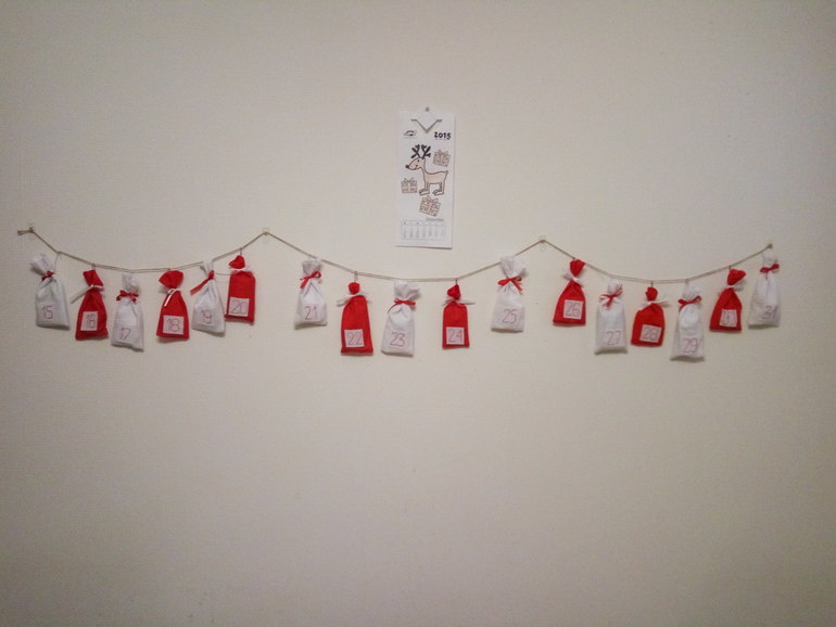 А я на этой неделе делала маленькие мешочки - решила Диме сделать мини-адвент. Не целый месяц, а с 15 числа. Посмотрю, заинтересует ли его. Если да, то на следующий год сделаю с 1-го числа.