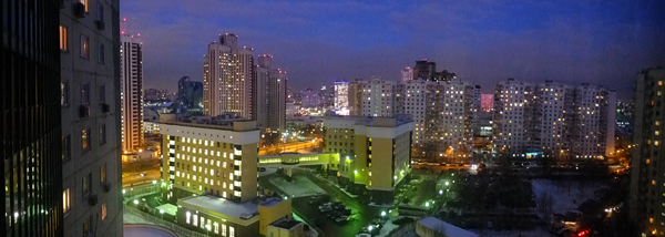 Погодка мерзкая, поэтому вид из окна вечерний. Сначала из кухни, потом из детской. Не, я не в Сингапуре, это Москва с 14 этажа)))