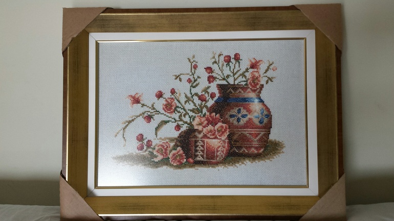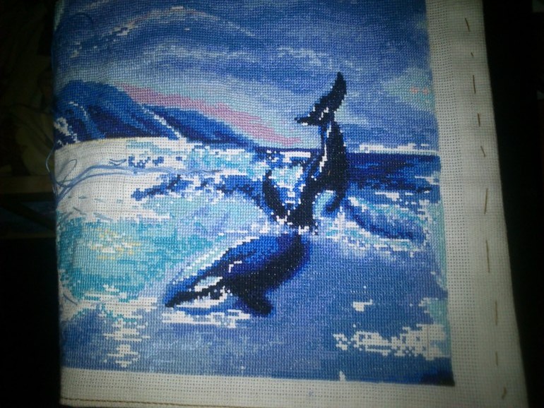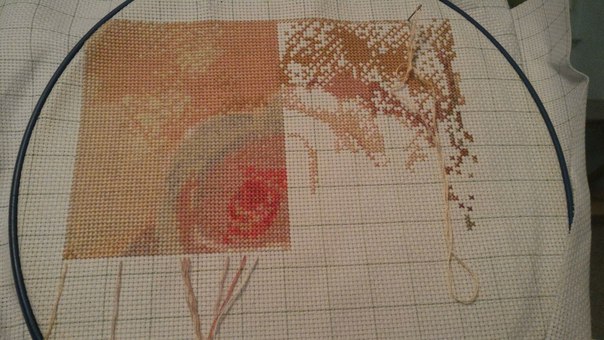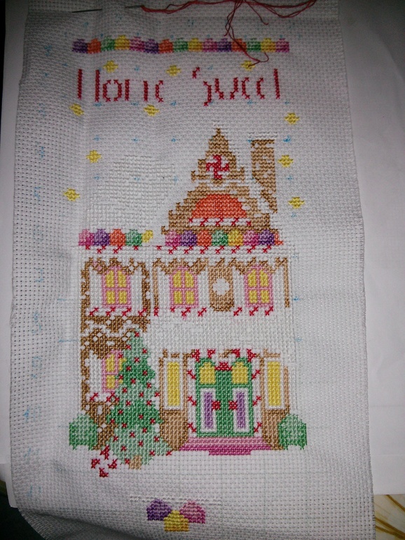 Домик я свой так и недовышила(( увы и ах. Хотя, что расстраиваться, времени не было вот и всё. Но я зато начала бэк) Вчера вечером я уже и красный бэк вышила, но у же не фоткаю, т.к. сегодня у меня завал по домашней работе