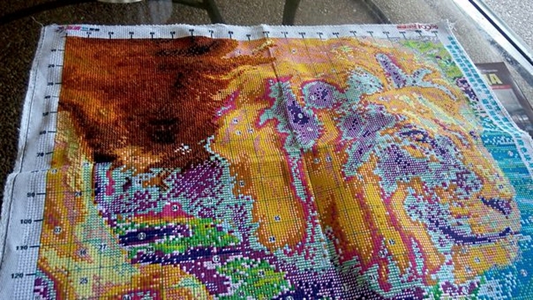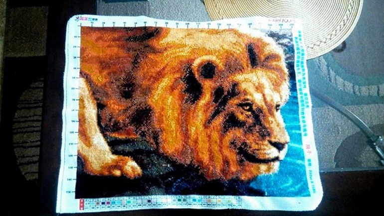 Вышивка крестом ГОТОВЫЕ РАБОТЫДевочки, я тоже похвастаться! Вот чем занимаю себя, пока в ожидании =) Целый месяц упорного каторжного труда по шесть-семь часов в день и вуаля: царь зверей готов =). 30х40 см, заказан из Китая на eBay всего за 400 рублей. В набор входила сама схема-канва, все нитки (очень много ещё осталось) и две иголки. Я безумно довольна! Поглажу и на стену в рамочку =)
