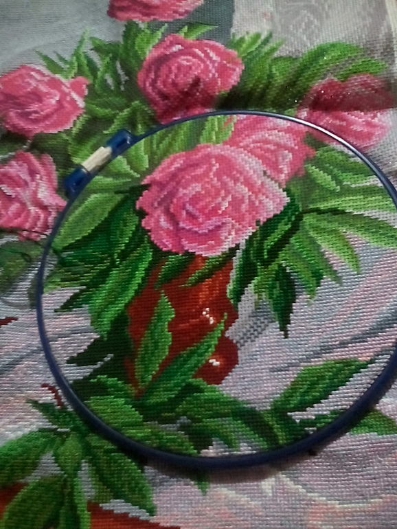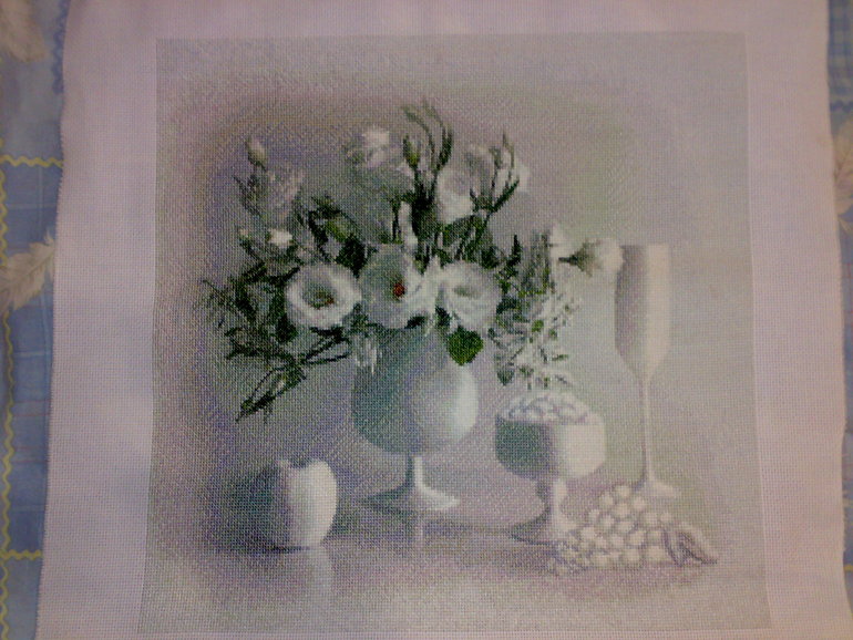 Фото на скорую руку и телефоном. Поэтому всей красоты не видно. А так да, мне очень нравится. Мечтаю пару вышить ( ирис по-моему.... Забыла! Во голова).. Но что-то пока никак не соберусь