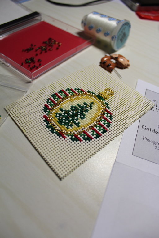 Долго я думала о покупке этого акса...пока курс рубля меня в чувства не привёл. Откладывать не стала и приобрела. Использовала при отшиве MILL HILL новогодней игрушки. Непривычно вначале,но быстро освоилась,бисеринки цеплялись ловко и работа шла легко.