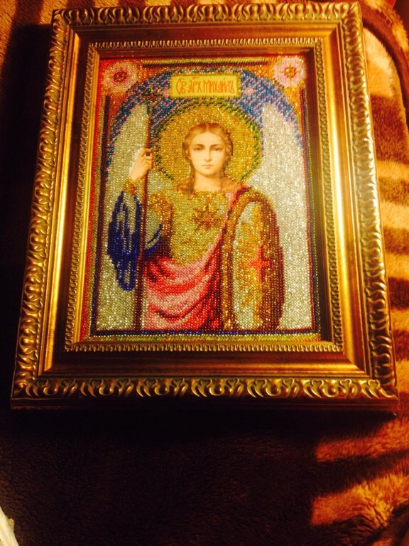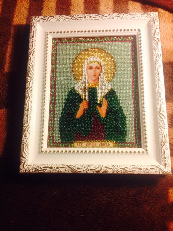 это не набор. Самостоятельно выбрала ткань с нанесенным ликом, выбрала бисер... вышила и отдала в багетку на оформление.