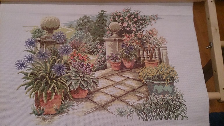 Итак, Лаванда вышивается на канве под лен (канва хорошо накрахмалена - мне нравится), нитки - шерсть. Вышивается в нескольких техниках - крест в 2 и 1 нить, полукрест, фрузелки, смешение цветов, бек...в общем ново для риолиса.