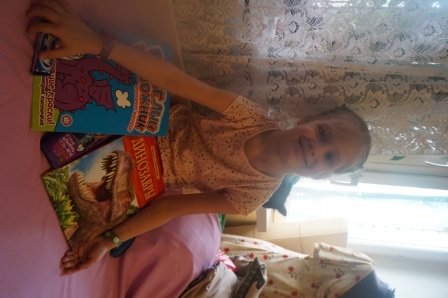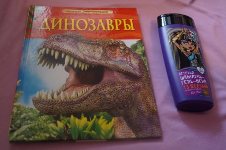 Книжка с ее любимыми динозаврами, шампунь с привидениями - она их обожает