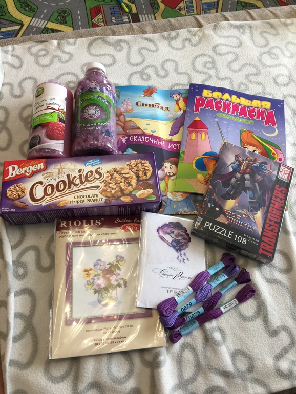 он у меня жуткий сладкоежка,и пока я собирала красную посылку все порывался ухватить оттуда мармелад)))я отвоевала)ну и наборчики для вышивания очень милые, думаю начать вышивать анютины глазки,очень симпатичные!