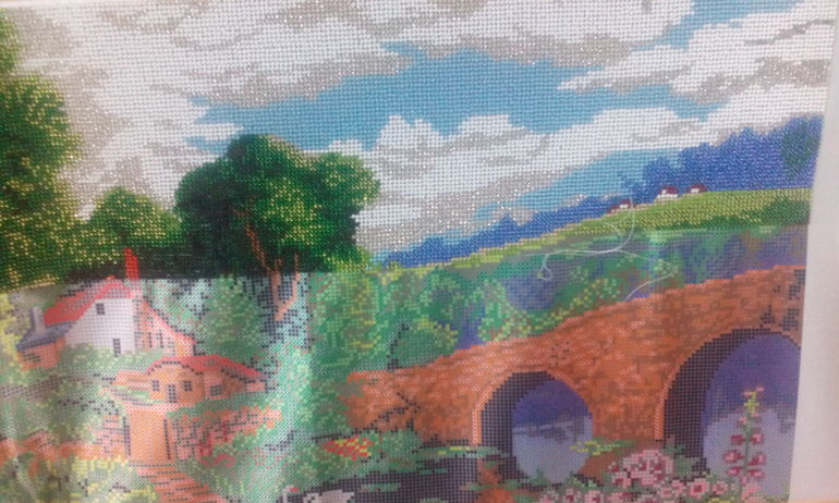 Начала я ее давно, еще пару лет назад, хотела, чтоб мы поменяли жилье..... Хоть и вышивка была начата в растущий период в нужный день и с должным настроем, но все вышло наоборот. Подробности не буду, вкратце - мы "потеряли" трешку, мужа сильно подставили на работе и его дело развалилось, оставив нам прям под рождение сына лишь глубокую яму, в которой мы сейчас сидим и кто знает, сколько еще в ней быть нам)) Но не о грустном! Я долго не могла настроиться продолжить делать эту вышивку, т.к какой-то прям хаос она несет мне, но недавно все же появилось желание. И сейчас в нее я вкладываю то, что хочу от нее помощи в удачи к приобретению дачного участка недалеко от нашего р-на города. Участок хочу под огород, необходим к сл.лету :) цель есть, рукоделочка есть, поддержка от вас есть - настрой готов!) осталось начать продвигаться :)