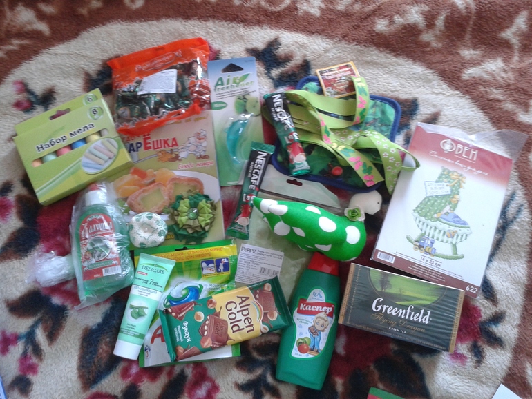 какое все очаровательно-зеленое! супер подарок! ))) эх, жду не дождусь своего зеленого из 4 круга))
