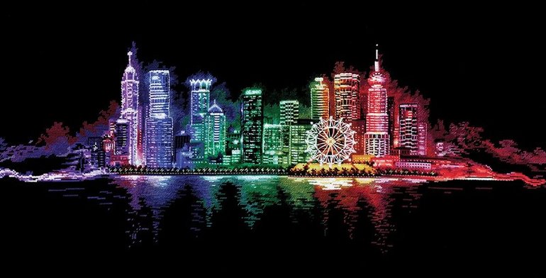 Ночной город. ⬆Правда не уверена что сразу возьмусь за него, работа большая, на пяльцах будет очень неудобно.