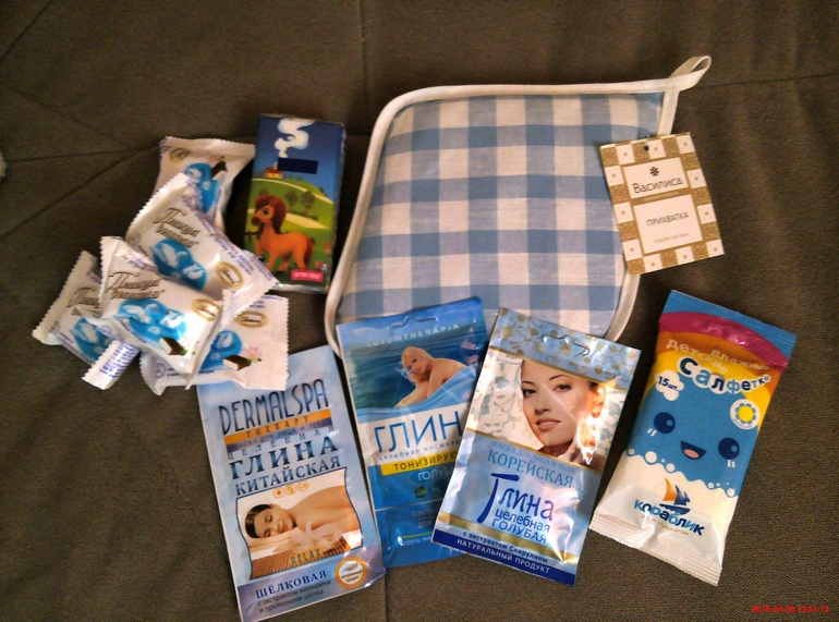 Для души ко мне приехала глина (конечно,голубая))), буду омолаживаться), платочки, салфетки и чудесная прихватка.
