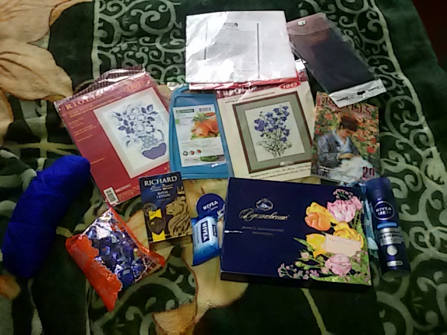 Всем привет! Вот и получила я свою синюю посылочку из города Пермь. Моей феей стала Татьяна, которая не испугалась моей узбекской прописки и отправила кучу подарков! Итак, с удовольствием делюсь радостью. Прошу по кат