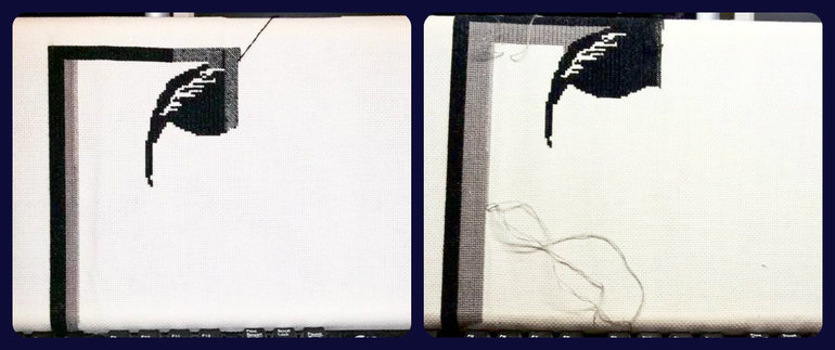 Все, как по цепочке: черный - серый, черный - серый... белый пока не начинаю, жду, когда побольше вышьется...