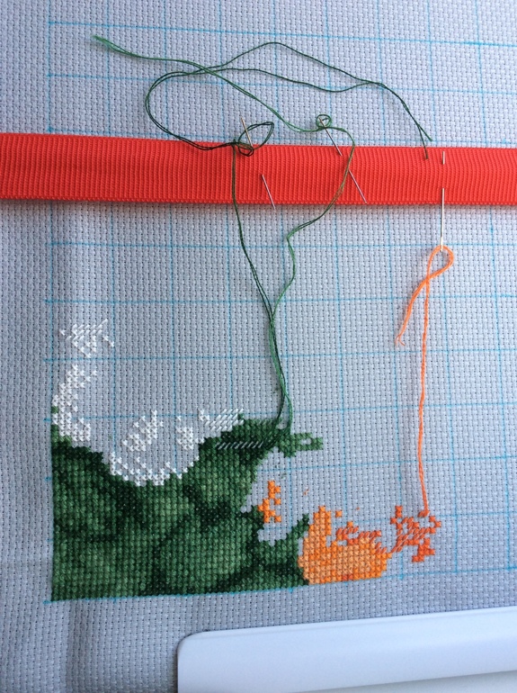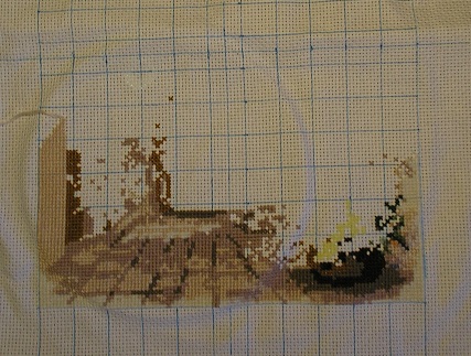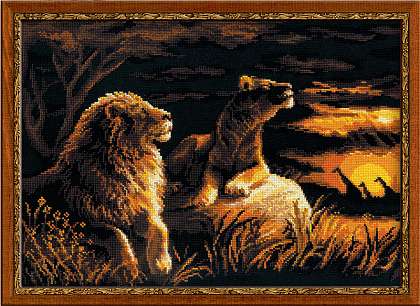 Не сбавлять сегодня не получилось. Засела за свою вторую работы - львы в саванне от Риолис на черн.канве. Там такие яркие цвета, здесь побледнее