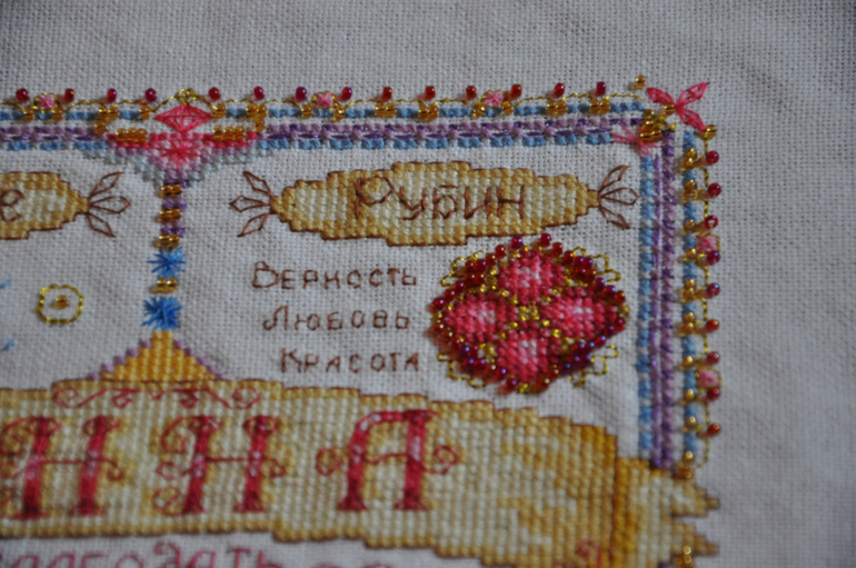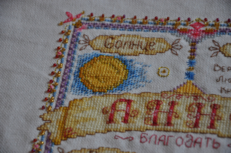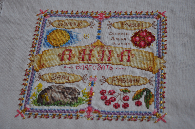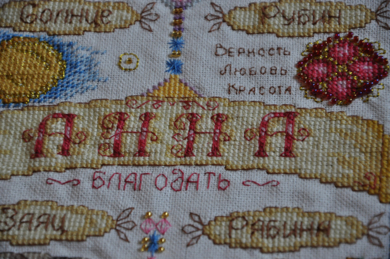 Вышила именной оберег для дочки. Фирма Панна. Еще не оформила.