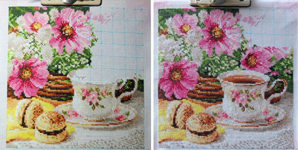 Теперь к вышивке. Со всеми сборами вышилось гораздо меньше, чем хотелось, но продвижение есть и это уже хорошо) Было/стало