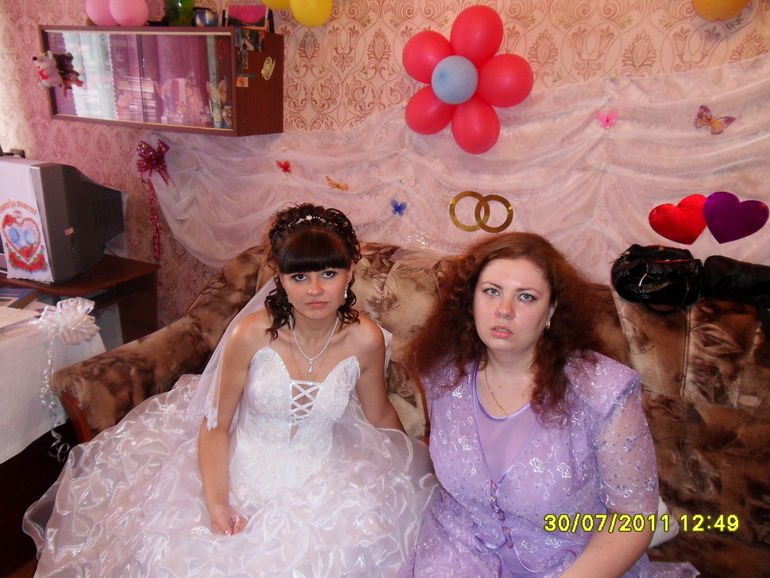 Это я с невестой. Причем самое интересное, что жених с невестой прожили вместе 7 лет и потом решили свадьбу сыграть, и он их просил познакомить его с девушкой, и моя мама спрашивала нет ли знакомых неженатых парней, они отвечали что нет, правда потом мы узнали что моего Диму активно сватали за подружку невесты, но она ему почему-то не понравилась, а меня решили сосватать с двоюродным братом жениха, но видимо от судьбы не уйдешь.