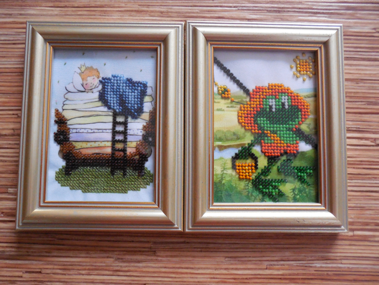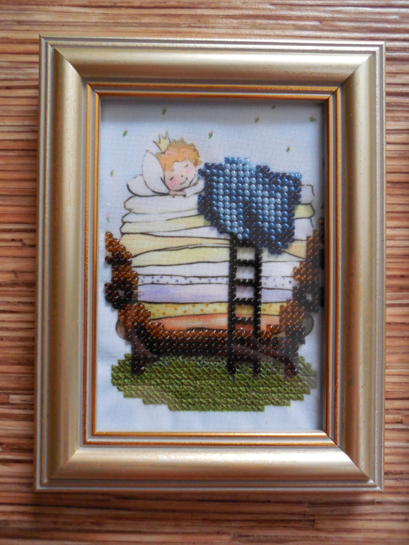 Вышивку с маленьким принцем решила вышить не всю бисером, а в комбинации с крестиком.