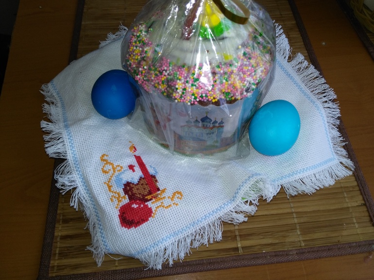На пасту ездили в деревню к родственникам мужа. За день святили куличи и яйца. Специально украшала лоток для яиц)))