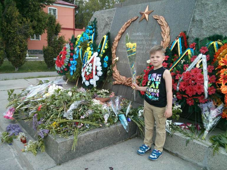 А ещё наша традиция, вчера, у Обелиска Славы. Наш сынуля