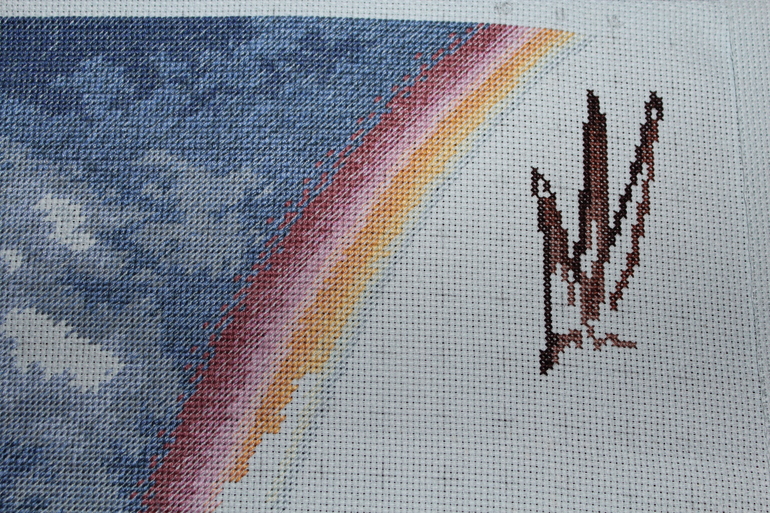 Теперь по вышивке. На фото не очень видно,но сделала ещё один нижний ряд