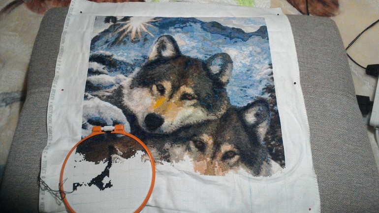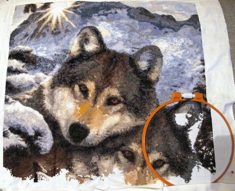 Волчицу доканала, перешла к волчонку. Могла бы больше сделать, но параллельно взялась вязать пледик. Почти довязала и вдруг решила, что это не то, что я себе представляла:-) Сегодня распустила и начала сначала:-) В вязании для меня это не проблема, а вот вышивку пороть ужас как не люблю.