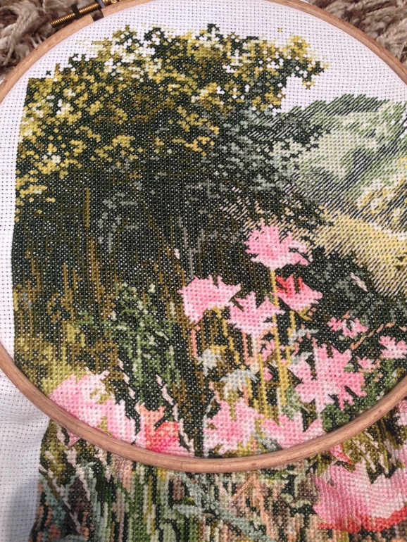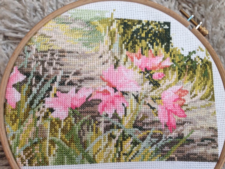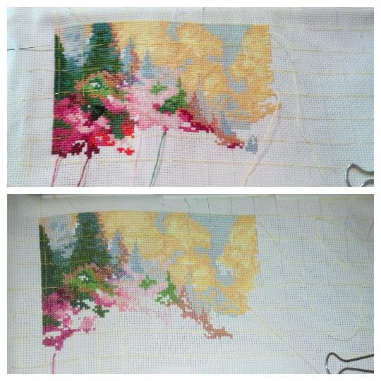 Так как с этого этапа я перехожу на розы, то показываю поближе и в разглаженном виде)) вышиваьь и вышивать еще, но результатом за 10 недель я довольна, после того как закончу розы, вернусь к этой работе.