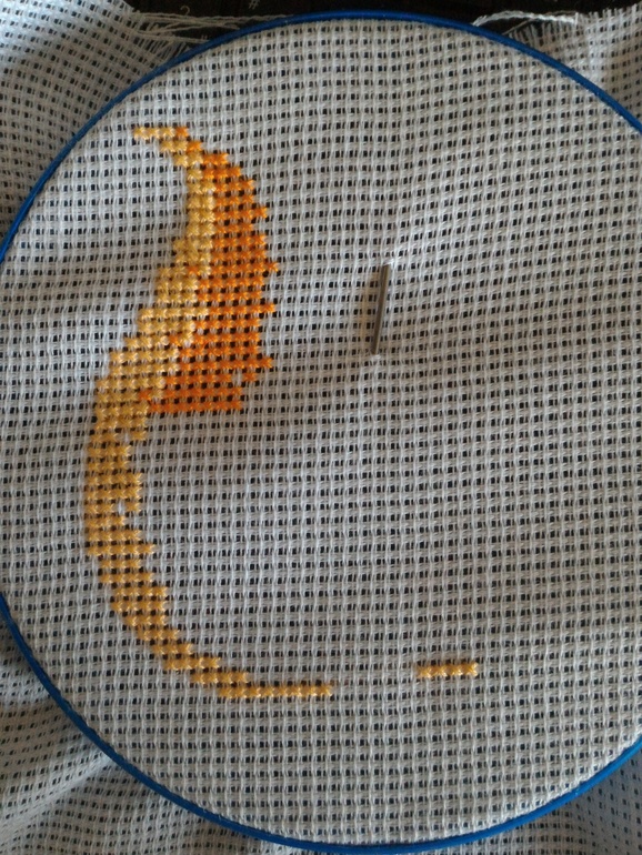 А еще, кто помнит, доча вышивала белочку и вот на этой неделе был прогресс, правда фото было я не могу вставить пишу с телефона, в общем все что ярко ораньжевое это вышито совместными усилиями на этой неделе))
