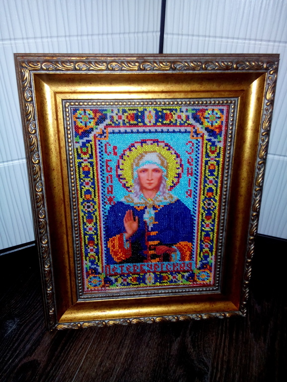 Забыла ещё показать оформленную икону. Это подарок подруге на день рождения.